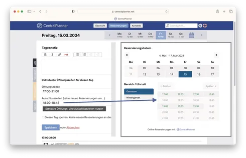 Wenn du zu bestimmten Tageszeiten keine Onlinereservierung annehmen möchtest, kannst du in deinem CentralPlanner Ausschlusszeiten einrichten. So hast du zu jeder Tageszeit die volle Kontrolle über deine Onlinereservierungen.